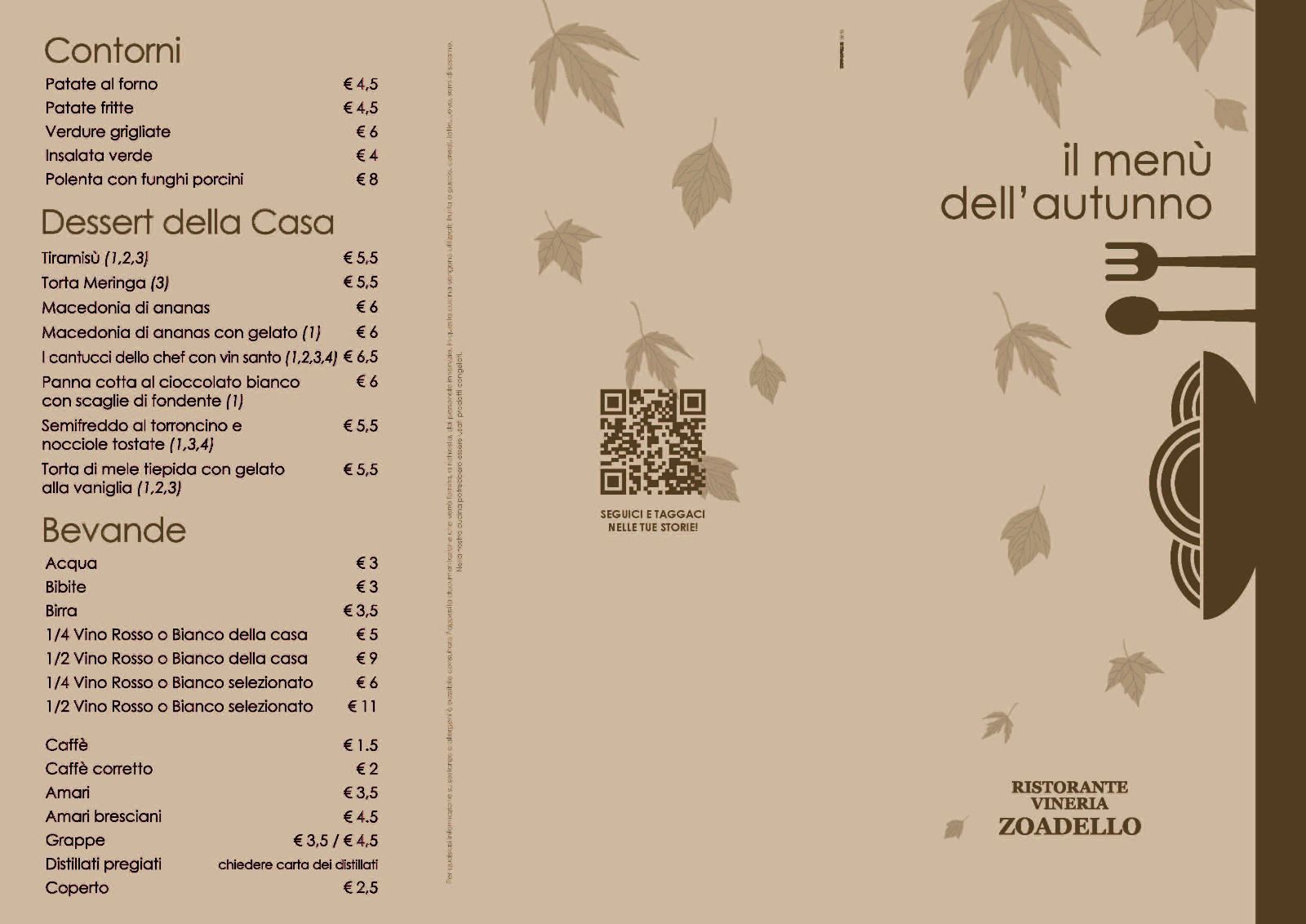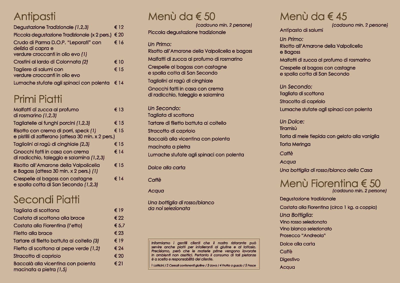 Il menu del ristorante ti propone i piatti classici della cucina italiana, tra cui la pasta fresca, le carni pregiate cotte alla griglia e i dolci fatti in casa. Puoi deliziare il palato anche con le specialità delle valli bresciane, cucinate come vuole la tradizione, seguendo le originali ricette tramandate di generazione in generazione.